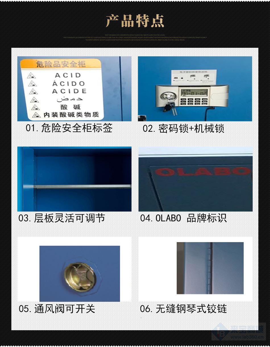 * 厚度1.2mm的優質鋼板經過點焊接,使用壽命更長,防火性更好;
