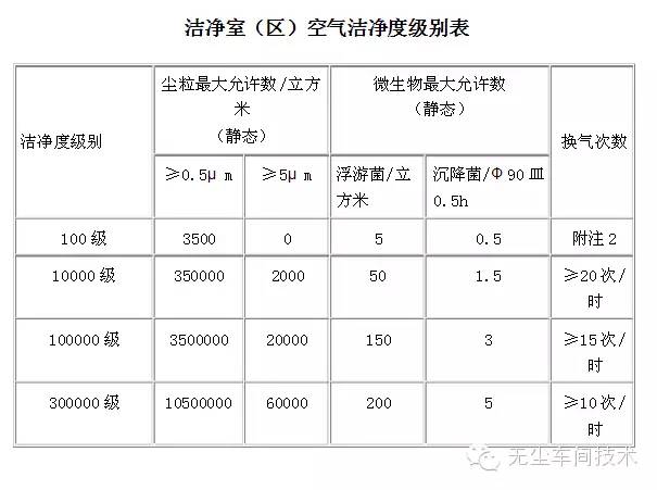 凈化工程等級(jí)(老規(guī)范,僅參考)