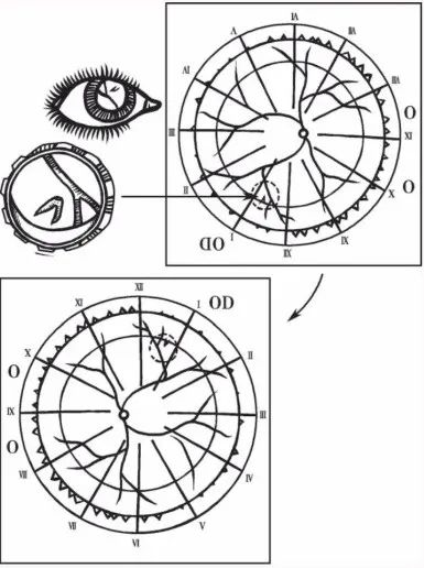 眼底病變的形態和檢眼鏡下所見,以及畫眼底圖時對倒像的處理